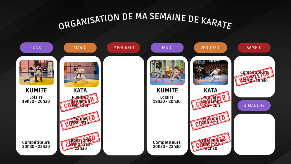 Le club proposera des entraînements spécialisés à la fois en Kata et en Kumité, permettant aux membres de se perfectionner dans ces deux disciplines essentielles du karaté avec l’aide d’instructeurs qualifiés.